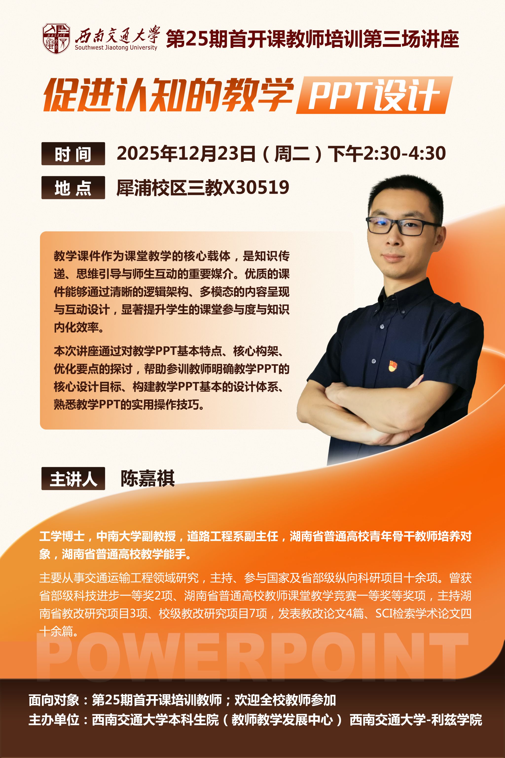 讲座时间:2025年12月29日星期一上午9:30讲座地点:X30224讲座题目:Pre-trained Surrogate Models in A Multiscale Computational Homogenization Framework主 讲 人:Poh Leong Hien个人简介:Poh Leong Hien is an Associate Professor in the Department of Civil and Environmental Engine...