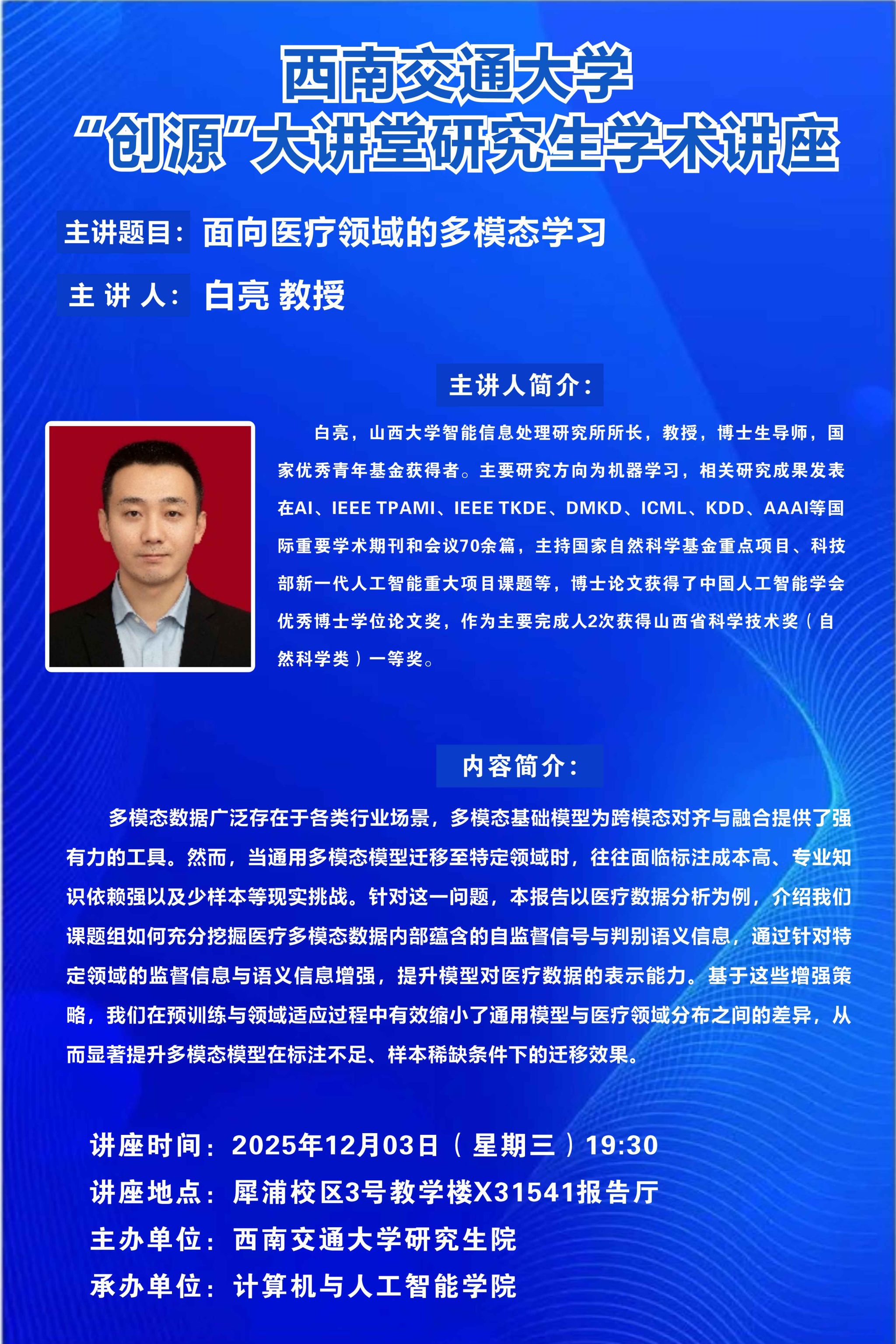 讲座题目:生理微环境调控智能纳米药物系统讲座时间:2025年12月4日上午10:00讲座地点:西南交通大学九里校区三号教学楼3324会议室主讲人简介:雍媛,博士,西南民族大学三级教授,现任西南民族大学实验室建设管理处副处长。2017年毕业于中国科学院高能物理所,师从赵宇亮院士,长期从事智能抗肿瘤纳米药物的制备、应用和安全性研究,在Advanced Materials, Advanced Functional Materials, ACS NANO, Nano Today等国际高...